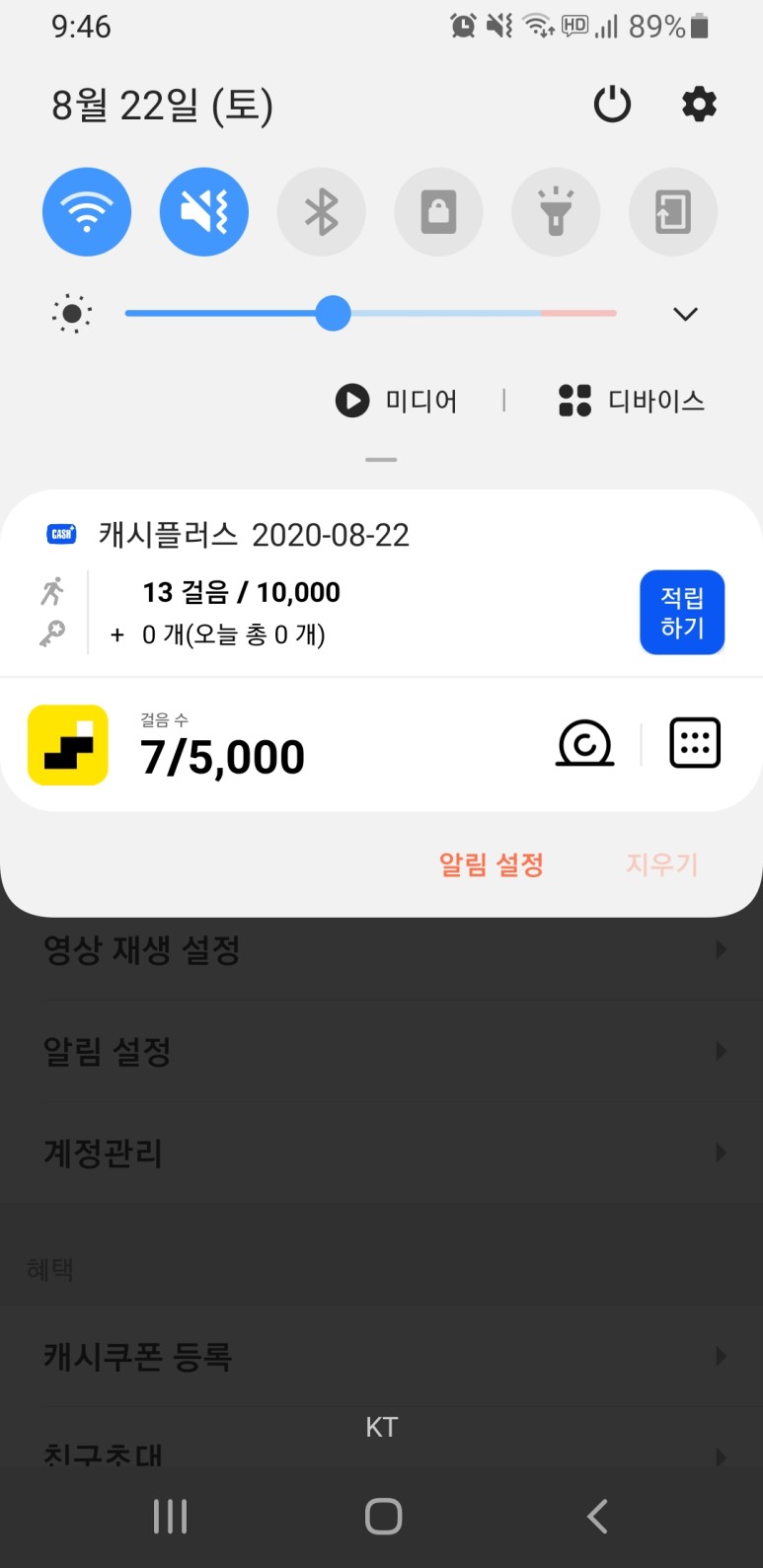 캐시슬라이드S가 분명히 설치되어 있지만, 만보기 기능은 캐시플러스만 작동되는 상황